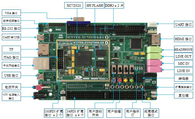 ★ICETEK-XC7Z020-A接口示意图: